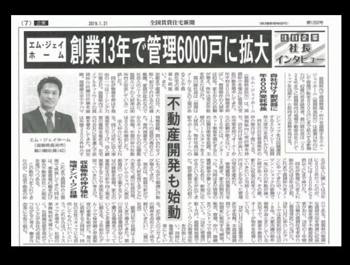 全国賃貸住宅新聞の「注目企業」として弊社代表のインタビューが掲載されました。