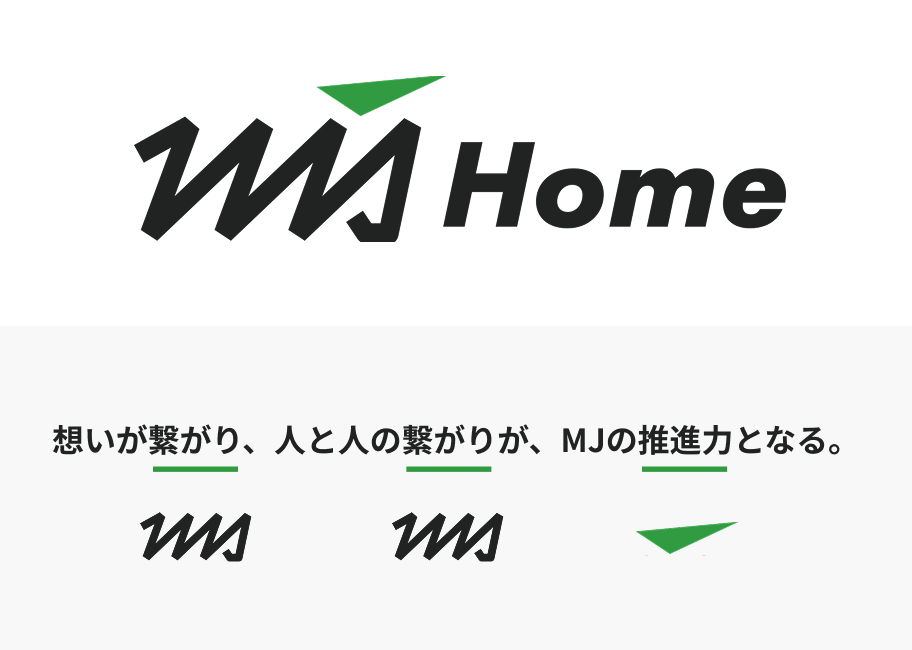ブランドロゴでは、つながったMとJで「その繋がりが紡ぐ想い」を、Jの点部分で「前に進む力」を表現し、また進化を続けるMJホームの変化にも対応できるよう、MJホームを表現するシンボルとスタンダードな書体を組み合わせたデザインとなっています。