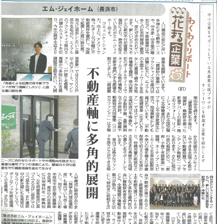 記事では、賃貸仲介事業のほか、賃貸管理事業、不動産売買事業、建築事業、そして教育・子育て支援事業など、多岐にわたる当社の事業について幅広く取り上げていただいております。